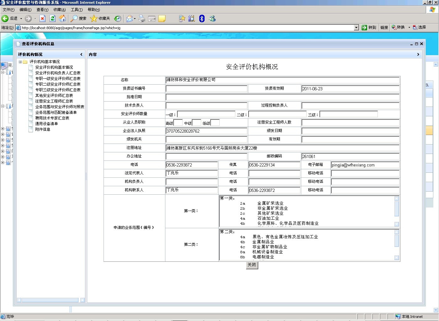對(duì)安全評(píng)價(jià)機(jī)構(gòu)資質(zhì)及業(yè)務(wù)范圍進(jìn)行監(jiān)管,完成資質(zhì)的申請(qǐng)、變更、補(bǔ)發(fā)、延期、注銷(xiāo)的業(yè)務(wù)辦理,向社會(huì)公布評(píng)價(jià)機(jī)構(gòu)名單,省外評(píng)價(jià)機(jī)構(gòu)的備案,防止監(jiān)管評(píng)價(jià)機(jī)構(gòu)在其許可的業(yè)務(wù)范圍外進(jìn)行安全評(píng)價(jià)活動(dòng),建立全省安全評(píng)價(jià)機(jī)構(gòu)監(jiān)管數(shù)據(jù)庫(kù)。