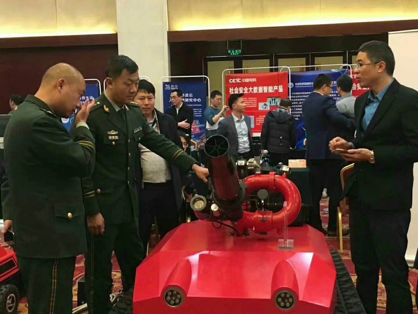 需求牽引,貼近實(shí)戰(zhàn),科技強(qiáng)警,科技興安,科學(xué)救援,用科技提北京城市安全水平,由中關(guān)村管委會(huì)主辦的中關(guān)村智慧公共安全新技術(shù)新產(chǎn)品供需對(duì)接會(huì)18號(hào)在北京舉行,北京市公安局、消防局、安監(jiān)局、市屬高校、市屬國(guó)企及區(qū)縣政府部門(mén)的80余家用戶單位200余人共同參加了活動(dòng),現(xiàn)場(chǎng)氣氛熱烈,供需雙方都有收獲。北京凌天主要負(fù)責(zé)人作《智慧公共安全關(guān)鍵技術(shù)裝備》的專題報(bào)告,向參會(huì)專家介紹了北京凌天將機(jī)器人,人工智能,物聯(lián)網(wǎng)技術(shù)應(yīng)用于公共安全的最新技術(shù)成果。來(lái)自警保,特警,消防后勤裝備,安監(jiān)科技規(guī)劃等使用部門(mén)的專家,對(duì)消防滅火偵察機(jī)器人,全地形排爆機(jī)器人,消防偵察機(jī)器人,應(yīng)急救援快速部署系統(tǒng),安監(jiān)巡邏車(chē),安全監(jiān)管立體化預(yù)警預(yù)測(cè)系統(tǒng)等表示濃厚興趣!