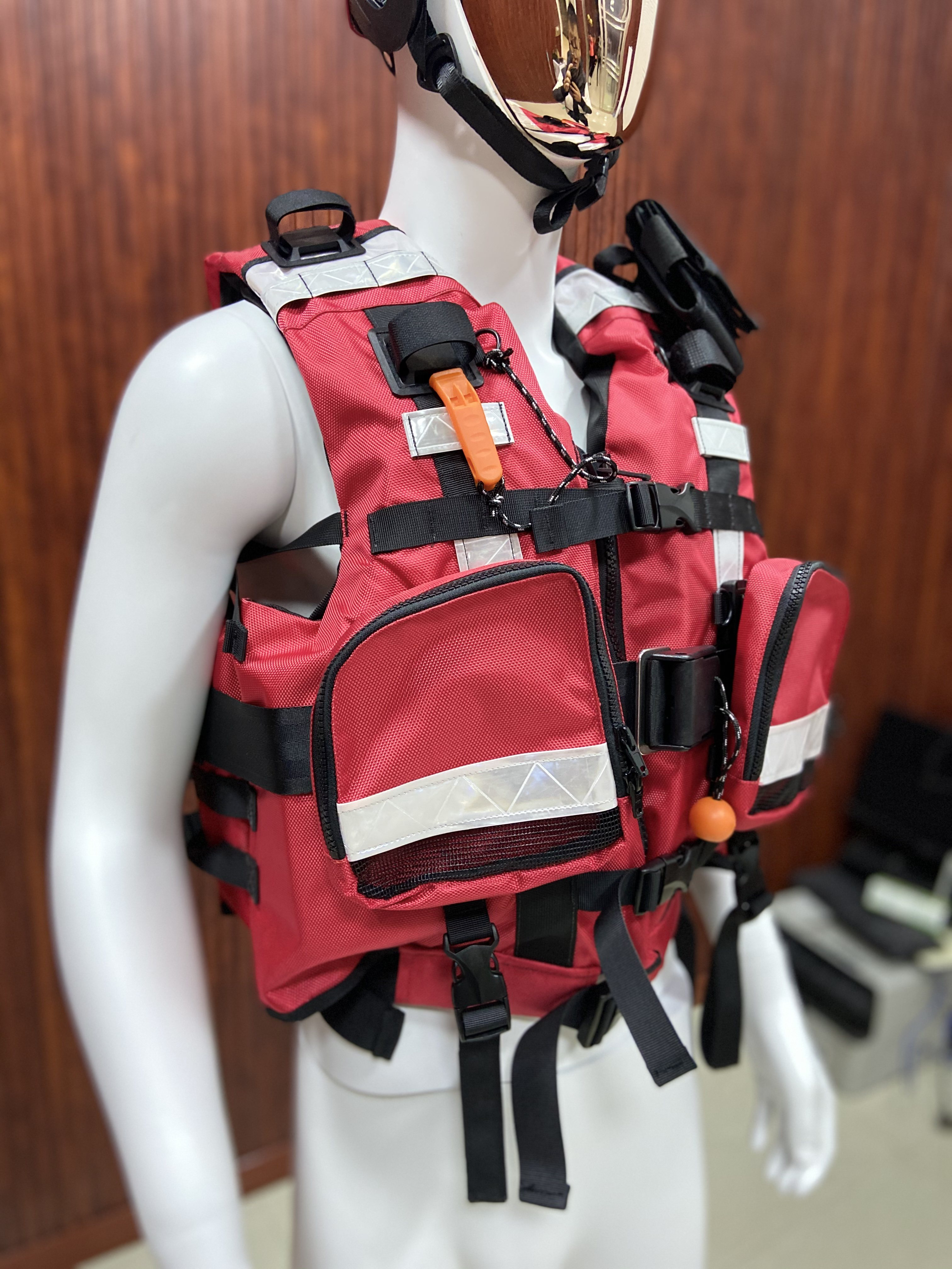 重型水域激流救援衣可產(chǎn)生22磅的浮力,相當(dāng)于10千克重力,適合胸圍76- 145厘米使用者,方形針織壓力點和500D材質(zhì)的Cordura面料使得使用者可以應(yīng)對任何困難情形。前置大口袋以及前置掛點,魔術(shù)貼可定制,配有快速釋放扣。穿脫方便。
