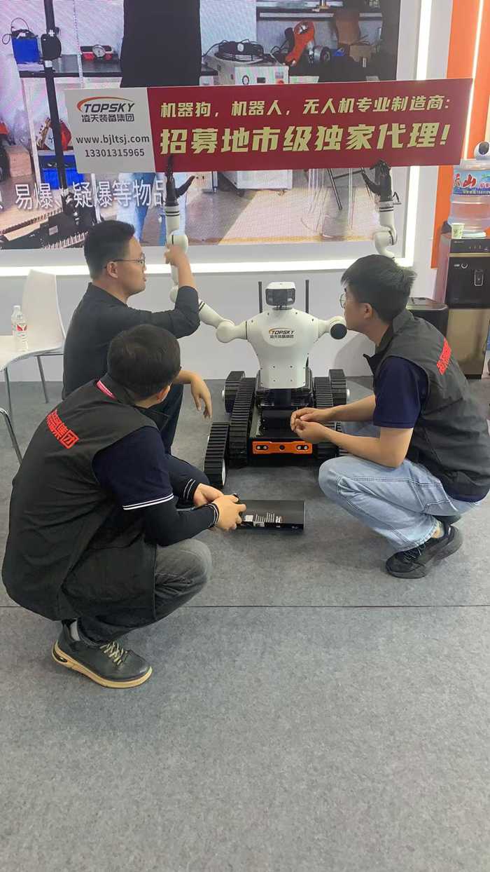 雙臂排爆機(jī)器人主要是用來(lái)處理爆炸物相關(guān)工作的排爆式機(jī)器人,也可用于偵察人難以達(dá)到的地形的一種機(jī)器人。同時(shí)該裝備采用擬人機(jī)械臂結(jié)構(gòu)兼容人體姿態(tài)隨動(dòng),手持控制,便攜控制箱等多種人機(jī)交互操控方式,可實(shí)現(xiàn)雙臂協(xié)同靈巧操作、雙向語(yǔ)音通話(huà)、高清立體視頻及回傳反饋等功能。履帶式底盤(pán),極大提升越障和爬坡能力,可適應(yīng)沙地、瓦礫、草地等多重復(fù)雜地形。同時(shí)新增的腰部自由度擴(kuò)大了機(jī)器人的工作空間,更加方便機(jī)器人處理地面和高處任務(wù)。能夠在非視距條件下,遠(yuǎn)程操控機(jī)器人打開(kāi)拉鏈包裹、消防栓、垃圾桶等可疑載體,檢查翻找危險(xiǎn)品及自制炸彈;能夠攜帶并使用柔性防爆罐,在非視距條件下,遠(yuǎn)程操控機(jī)器人完成從爆炸物抓取、轉(zhuǎn)移、放置于排爆罐內(nèi)、關(guān)閉排爆罐的全流程作業(yè)。