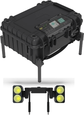 高集成度在提供便攜性的同時,45米線纜的自動收線和放線功能又可以保障系留系統可以迅速的展開和回收,減小線纜受到撞擊和折彎,是保護線纜的有效裝置。內置儲能器,在無市電情況下也可以實現超長航時連續工作;搭配著泛光燈使用。