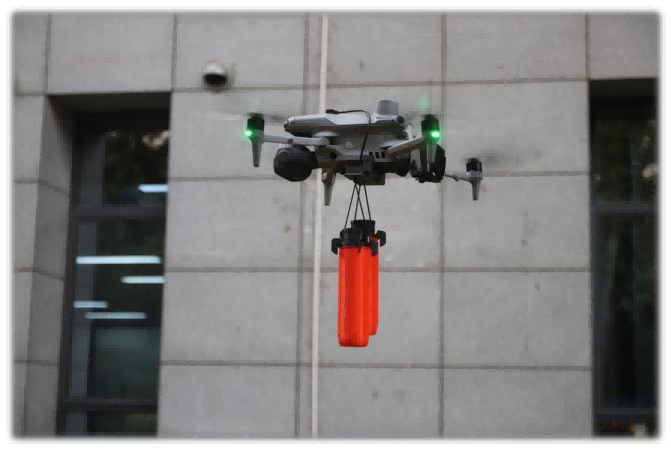 一款具備紅藍爆閃燈和拋投器的二合一裝備。能在惡劣氣候條件下可靠工作,通過接口,可掛載在無人機上使用,具備底部5秒快速安裝的能力,具備2段拋投功能可實現(xiàn)2個掛載物分別拋投,同時每個拋投點實現(xiàn)2種拋投模式:綁帶拋投,掛線拋投。