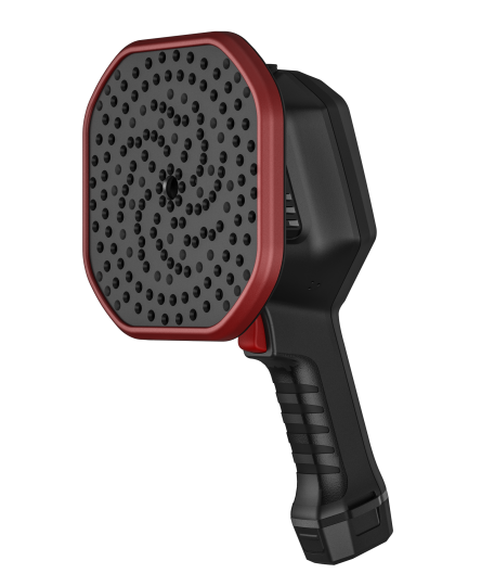 本產(chǎn)品是一款手持式的工業(yè)聲學(xué)成像儀,廣泛應(yīng)用于電力局放,帶壓或真空條件下的氣體泄漏檢測(cè)、氣密性檢測(cè)、設(shè)備異響定位等多種場(chǎng)景。儀器利用麥克風(fēng)陣列波束形成技術(shù)獲取聲源分布數(shù)據(jù),并配合高清攝像頭實(shí)時(shí)采集視頻畫面,通過將聲源分布數(shù)據(jù)同視頻圖像進(jìn)行聲像融合,把變化的聲源動(dòng)態(tài)的呈現(xiàn)在顯示屏上。 可以幫助現(xiàn)場(chǎng)巡檢人員快速定位故障,提供處置依據(jù)。